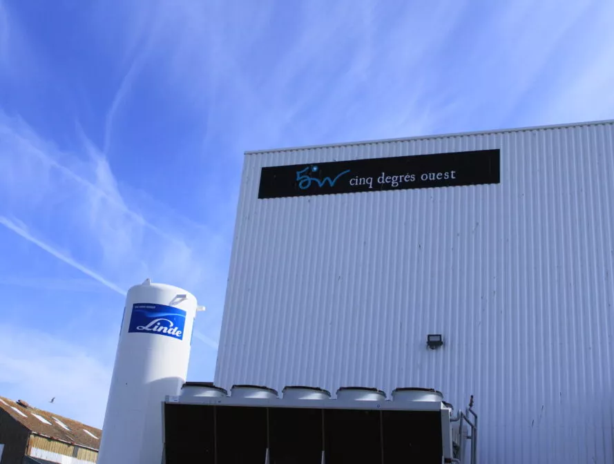 La société 5 Degrés Ouest, spécialisée dans le décorticage à haute pression de coquillages et crustacés, a intégré en juillet 2018 son nouvel outil industriel sur le port de Lorient Keroman (56). Les équipes ont déployé un nouveau process industriel dans une nouvelle usine de 1 783 m² et intégrés 390 m² de bureaux rénovés.