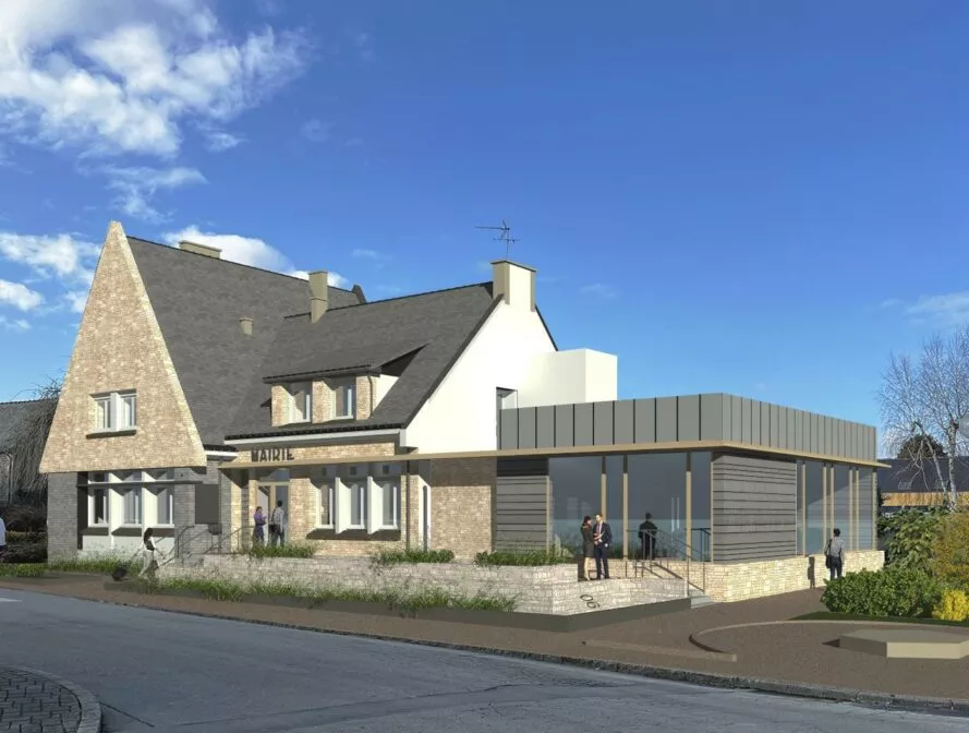 Commune nouvelle issue de la fusion de Naizin, Moustoir Remungol et Remungol, Evellys souhaitait réhabiliter et étendre l’ancienne mairie de Naizin afin de disposer d’un nombre suffisant de bureaux, d’une salle de conseil dimensionnée à la hauteur des besoins et ainsi améliorer tant les conditions de travail des agents et des élus que l’accueil du public.
